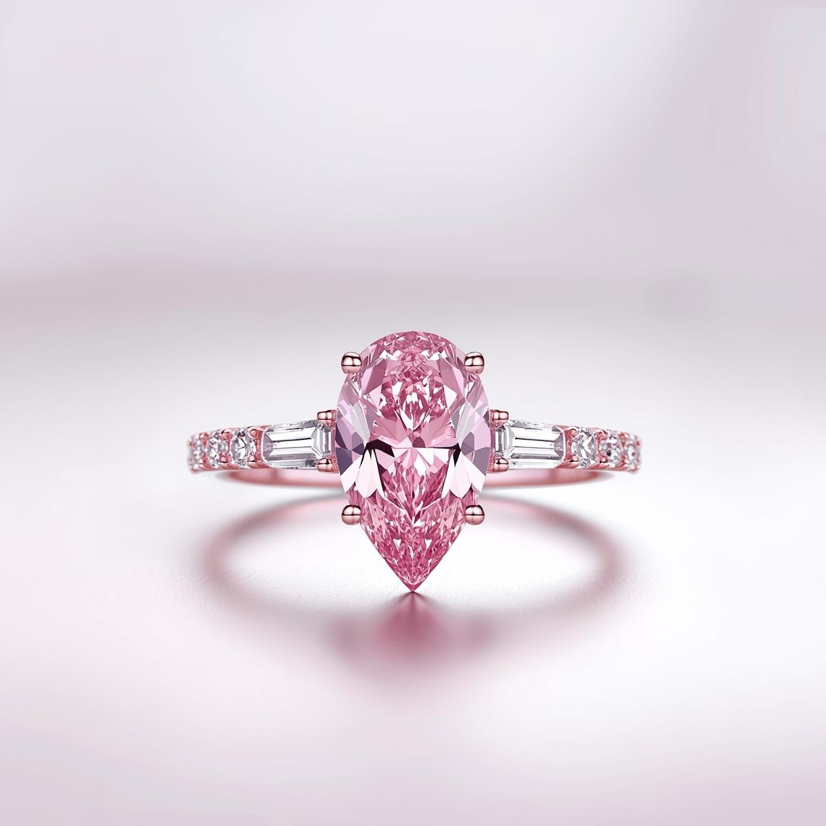 טבעת יהלום ורוד מעבדה בחיתוך טיפה יוקרתית 1.5 קראט ZOAR