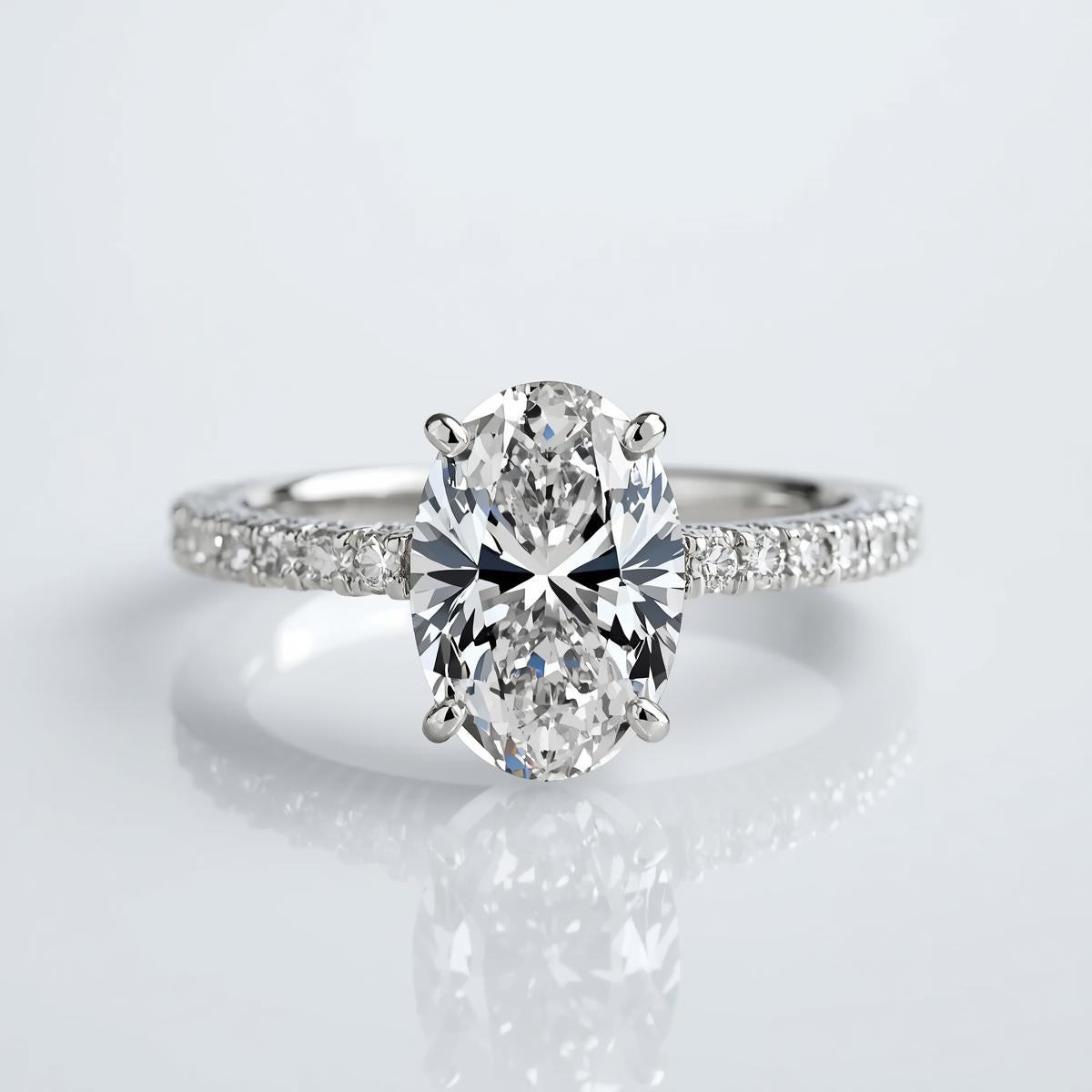 טבעת יהלום מעבדה 3 קראט IGI בחיתוך אובל עם אבני צד במבצע רק ב-6.400 ש"ח במקום 14.500 ORA