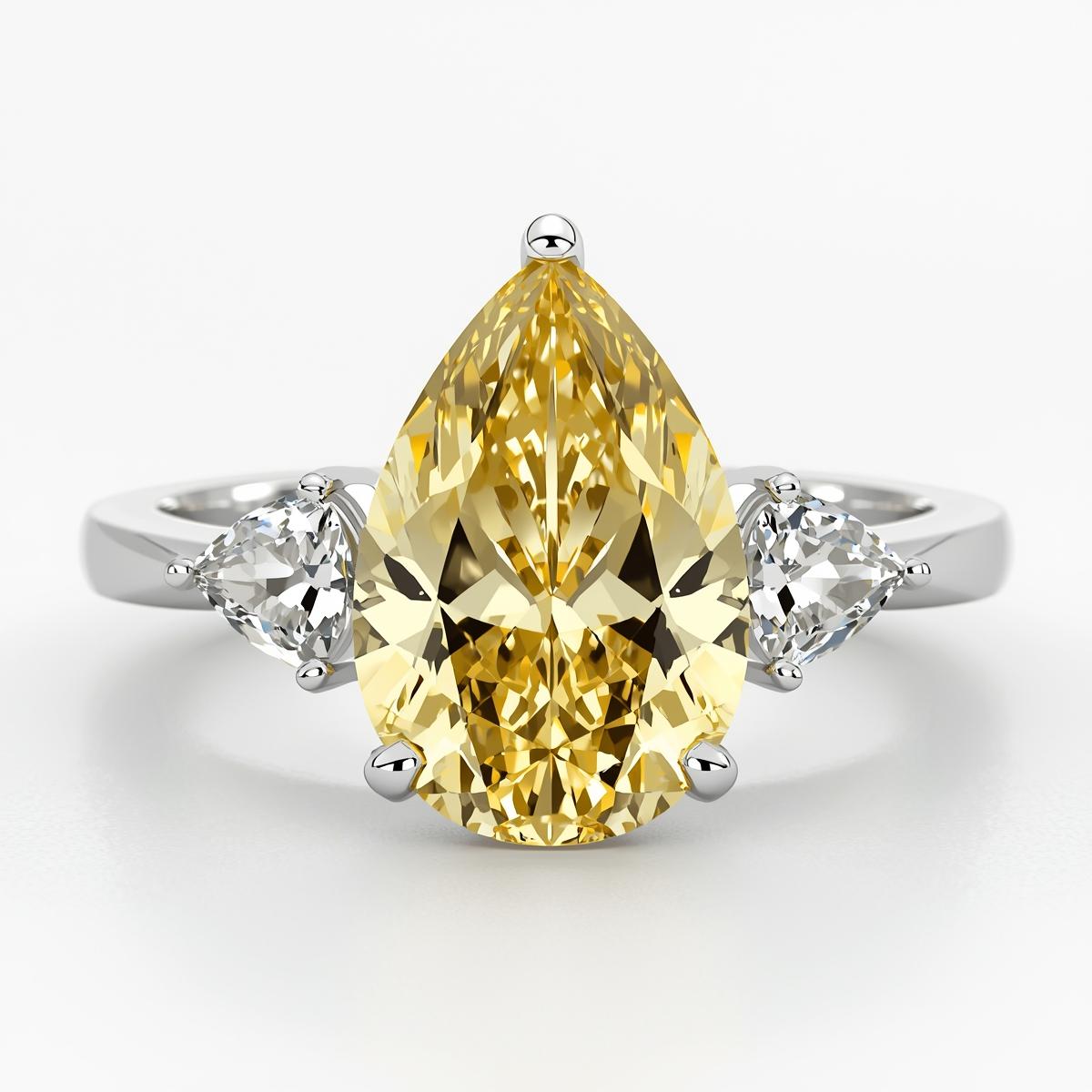טבעת יהלום צהוב מעבדה בחיתוך טיפה בשילוב טיפות בצדדים בעיצוב מרשים וקלאסי