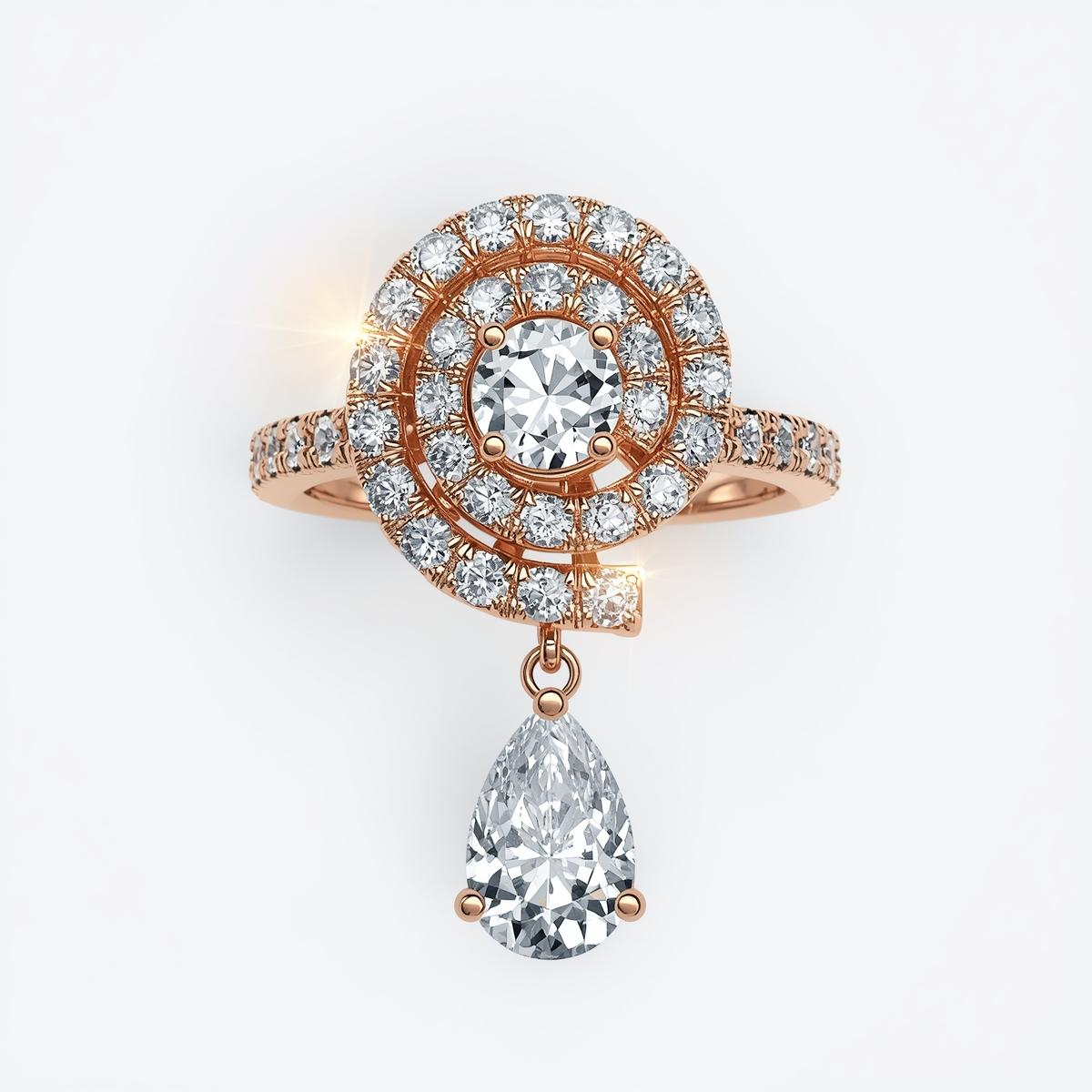 טבעת יהלומים בצורת שבלול בשילוב יהלום עגול וטיפה יוקרתית דגם שילה